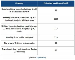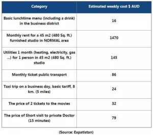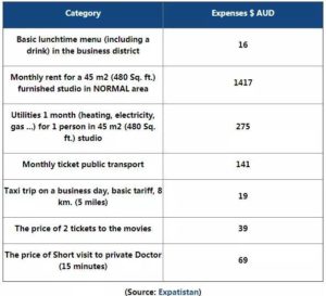 不过,墨尔本在花费上也不低,通常花费标准为: