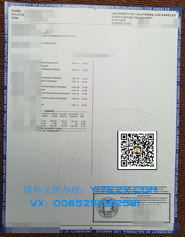 Would you like to havev a fake UCLA transcript? 加州大学洛杉矶分校成绩单