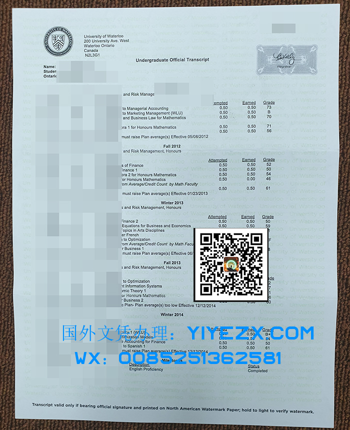 Can I purchase a false University of Waterloo transcript, 购买滑铁卢大学成绩单