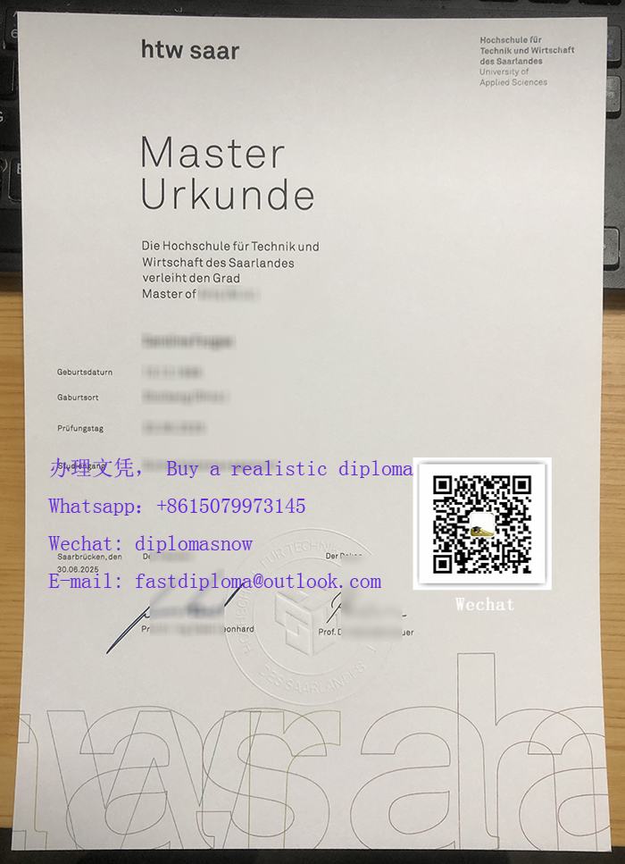 Buy a htw saar Urkunde. How to get a htw saar diploma? 2025德国萨尔应用科技大学文凭购买. 文凭购买。 HTW Saar(Hochschule für Technik und Wirtschaft des Saarlandes)是德国萨尔州的一所公立应用科技大学,提供工程、商科、计算机科学等领域的本科和硕士课程。其毕业证书(Urkunde)通常包括以下内容: