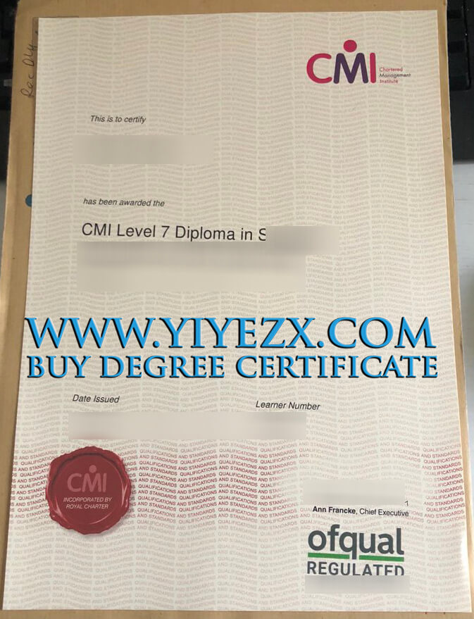 Buy CMI Level 7 diploma online, Buy fake diploma in UK, CMI(Chartered Management Institute)特许管理公会。原名英国皇家特许管理协会, 成立于1945年,是英国唯一的专注于管理和领导力的学会,也是世界权威的管理学公会。CMI有520名团体会员,包括了世界著名的商学院和管理研究机构。获得CMI的认证表示学术机构在管理学方面拥有世界领先的水准。