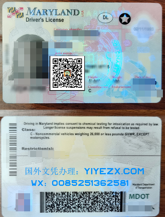 Buy a Fake Maryland Driver’s License with scannable details, 马里兰州驾照出售